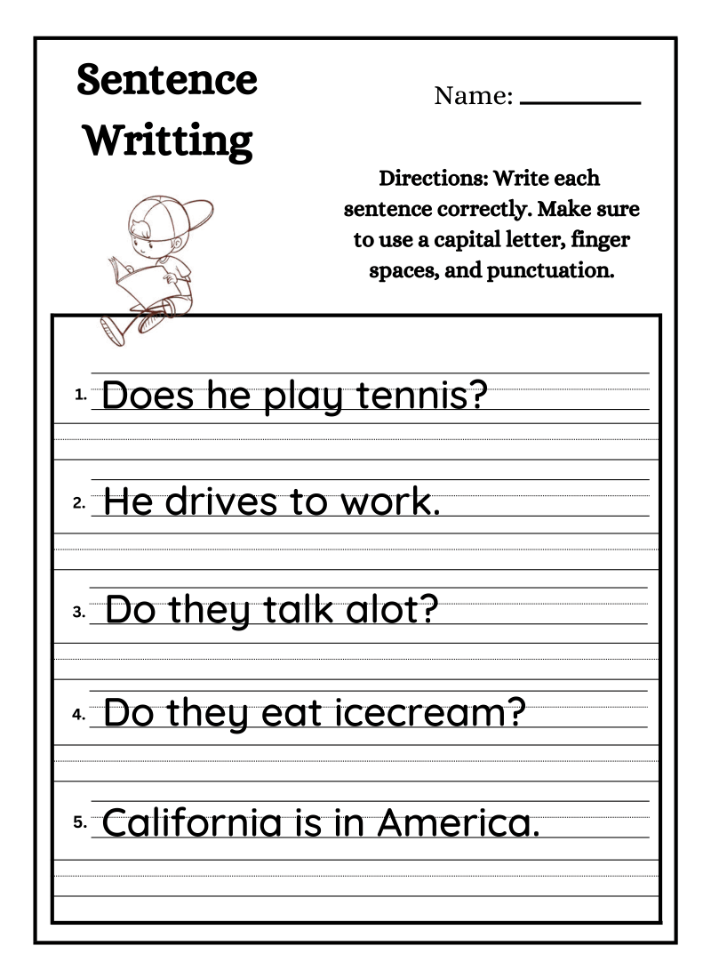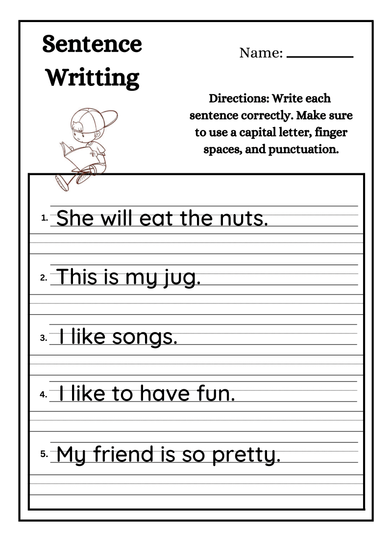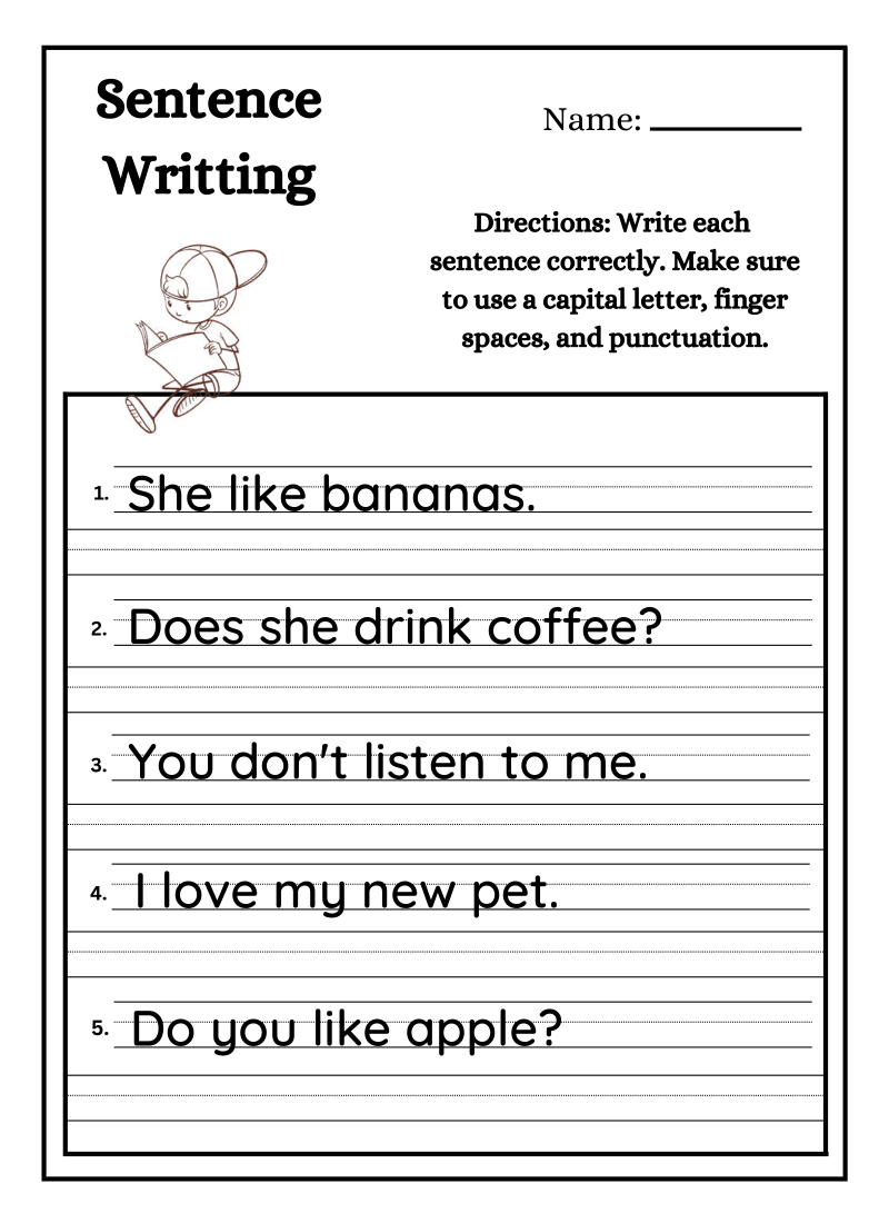 - Write the Sentence: Finally, they put pencil to paper and wrote the whole sentence neatly on the lines. This is where it all clicks into place. You’ll see them carefully putting that capital letter at the start and that all-important period at the end. Cue the confetti!